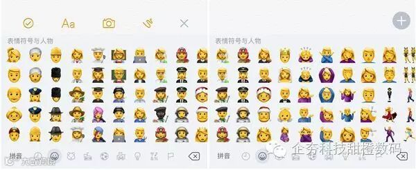 苹果对 iOS 10 的 Emoji 表情进行了重绘并补充了一部分新的表情,这次 iOS 10.2 则加入了新版国际码标准 Unicode 9.0 在今年六月份发布的 70 多个新表情,包括摊手、扶额等等,以后和朋友发短信表情图支援更为强劲。