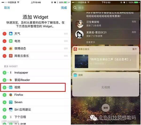 iOS 10.2 公测版给原生视频增加了小插件,现在你可以在下拉 Widget 中编辑加入视频,然后就可以随时下拉看到视频内容了。