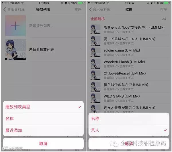 iOS 10.2 公测版的音乐应用中,播放列表和歌曲列表界面都增加了「排序」按钮,可以各自按照不同的选项进行排序了。另外在「搜索」中,Apple Musice 和音乐资料库的位置做了调整。