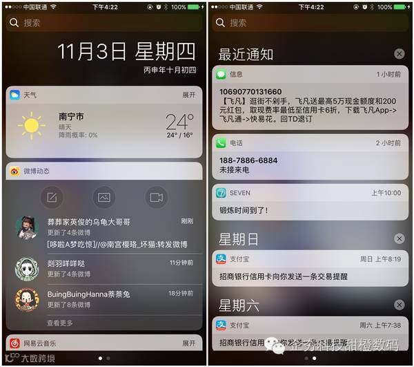 此前 iOS 10 的通知中心每次打开都强行显示通知为第一版,无论你上次查看的是通知还是 Widget,也无论通知页面上是否有内容。10.2 公测版的通知中心则将返回你上次查看的界面,不在强制拉下通知了。