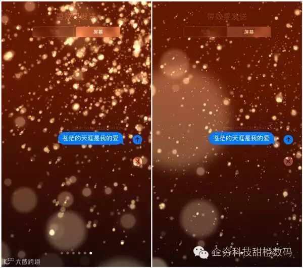 之前我们给大家介绍过 iMessage 炫酷的全屏效果,在发送信息的时候,长按住最右侧发送小箭头不放,就可以进入效果选择,切换到「全屏」,你会看到此处增加了一个名为 Celebration 的效果,当然,动态特效也更加闪瞎狗眼,同时还伴有震动反馈。