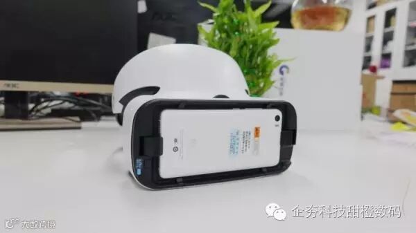 头显部分,插手机的地方有一个USB Type-C的接头,手机插上去再按下就固定住了,与Gear VR的设计类似。头显的右上边有一个按键,功能与Cardboard和小米VR玩具版的按键类似。上面是近视调节的齿轮,支持600度近视。
