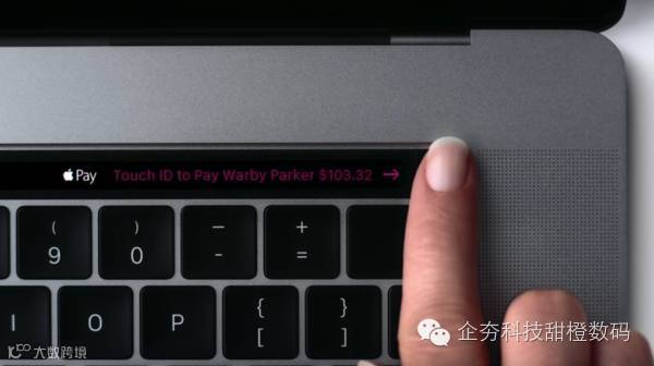 首先,它取代了 FN 键在 MacBook Pro 顶部的位置,Touch Bar 在最右侧集成了 Touch ID ,我们可以通过触碰来解锁 Mac ,使用 Apple Pay 的时候不需要通过 Safari,iPhone 或 Apple Watch 来验证,而且,它由光滑的玻璃打造而成,手感非常的棒!