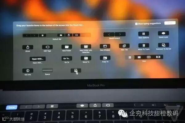 “我想你会喜欢它可以自定义各种默认空间。我们通过选择视图>自定义触摸栏打开查找器菜单,你将会得到完整的一套按钮,你可以将其拖动到触摸栏。而选项类似于您在查找“查找器”窗口中自定义工具栏时所看到的。