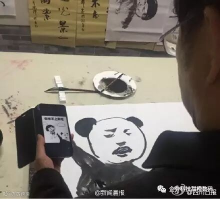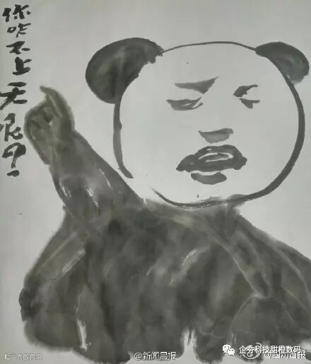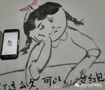 由于爷爷因为平时最大的爱好是书法,老爷子还用毛笔画了一套“中国风”表情包,魔性十足。