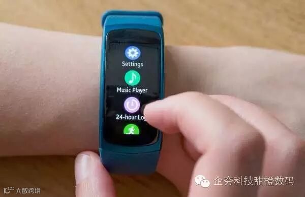 三星Gear Fit 2智能手环,拥有一个弯曲的1.5英寸Super AMOLED显示屏,看起来比大多数智能手环更加漂亮。触摸屏非常适用于监控跟踪和审查锻炼数据,以及显示智能手机的通知,也可以使用预先写入的消息进行回复。