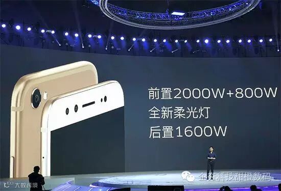 作为最主要的卖点,vivo X9配备2000万像素+800万像素超大像素前置自拍双摄像头,为vivo联合索尼共同打造的IMX376传感器,主镜头指标为1/2.8英寸F2.0光圈的5P镜头,而800万像素的摄像头为辅助,用于精准测距和专业虚化。