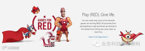 -App Store应用商店特别活动。20 款热门游戏将发布为 Product (RED) 筹款的独家付费内容,该活动将持续一周。这些游戏的应用内购买所创造的收入将全部捐献给全球基金。包括,愤怒的小鸟2、愤怒的小鸟泡泡大战、Best Fiends 呆萌小怪物、Best Fiends Forever永远的呆萌小怪物、海岛奇兵、Candy Crush Jelly Saga、部落战争、部落冲突:皇室战争、CSR2、Episode、农场英雄传奇、虚拟农场:热带天堂岛、FIFA Mobile、卡通农场、漫威格斗冠军、PewDiePies主播模拟器、植物大战僵尸:英雄、模拟城市、War Dragons龙战以及YAHTZEE With Buddies。