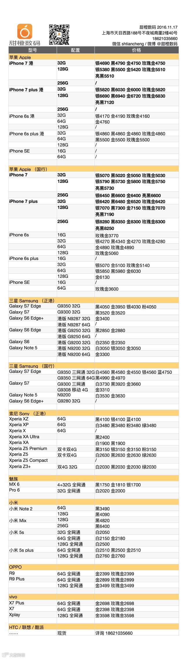 iPhone 7 及 plus 港版机型持续波动中,但 128G 机型价格有所降低,国行版仍然四平八稳;三星 Galaxy S7 Edge 新发机型海蓝色到店,价格比旧款颜色稍高;小米、魅族新机小幅上扬。