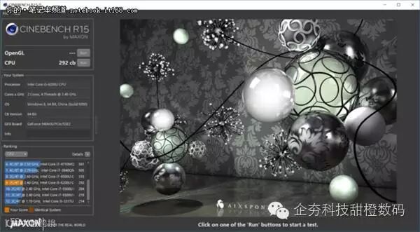 ▲接下来是利用CINEBENCH R15对CPU进行测试,CPU性能介于I7-5500U和I7-6500U之间,想具体了解该软的朋友可自行百度