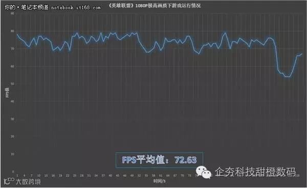 ▲接下来我们对该机运行《英雄联盟》游戏进行了FPS值统计,当我们将分辨率调至1080P、画质调至极高情况下FPS平均值仅为72.63,运行流畅,要知道英雄联盟FPS值在40左右便可流畅运行,因此该显卡整体表现还是相当不错的。