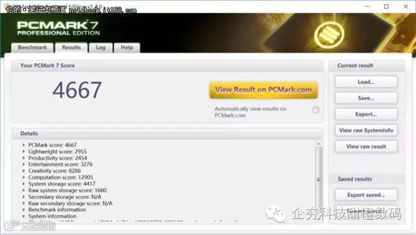 ▲最后展现一下PC mark 7的得分,4667的得分代表了小米笔记本Air的确是一款相对好用的超极本。