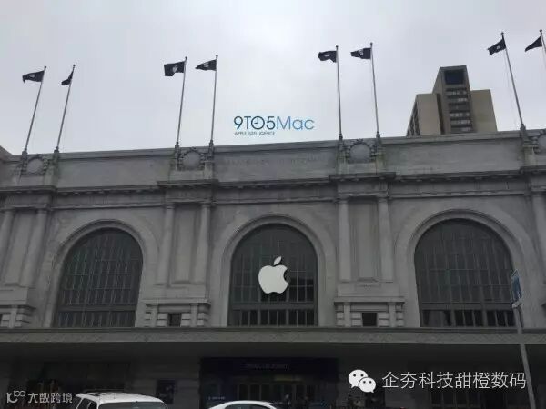 根据国外网站 9to5Mac 的报道,苹果一如既往地在发布会举办地挂上巨大的公司标志,同时还在比尔·格雷厄姆市政礼堂的顶部插上了多面苹果旗帜。与此同时,苹果还在入口处挂上了 Special Event(特别活动),而且还在两旁的显示橱窗上贴上了邀请函上的散景照片。有分析认为,这是对双摄像头 iPhone 7 Plus 拍照效果的一种暗示。