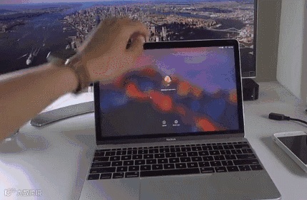 如果用户同时购买了Apple Watch,并且使用同一个Apple ID登录,那么升级到macOS Sierra之后就能通过Apple Watch对Mac电脑进行非接触式的解锁了。用户只需要在Mac安全设置中勾选“允许Apple Watch解锁Mac”的选项,并且将手表戴在手腕上(经实测放在桌子上不行),那么在翻开Mac屏幕之后不到1秒钟,电脑就可以自动解锁。