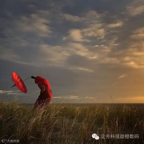 第三张获奖作品为Robin Robertis的《她随风而弯腰》,画中红衣女主与日落天地相得益彰。这张照片由iPhone 6所拍摄,并经过了Snapseed和Photoshop Express的后期处理。
