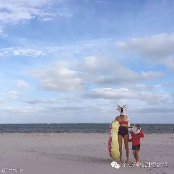 网页上放出的第四张照片,是来自Carolyn Mara Borlenghi的亲自海滩人像摄影。该作品是Instagram #WHPwonderland系列照片的其中一张(圣诞前一个周末拍的Wonderland),拍摄者带着孩子去海滩边戴着驯鹿面具摆拍了一张。