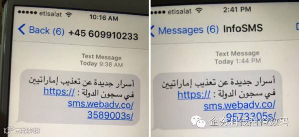 在 8 月 10 日的早晨,来自阿联酋的 46 岁人权活动家 Ahmed Mansoor 在自己的 iPhone 上,看到了一条来自陌生电话号码的奇怪短信。这条短信的内容很唬人,写着“阿联酋国家监狱里的虐囚新消息”,还配上了一条链接。在之前的斗争中,阿联酋政府就使用 FinFisher 和 Hacking Team 等公司的商业间谍软件对 Ahmed Mansoor 实施过黑客行动。