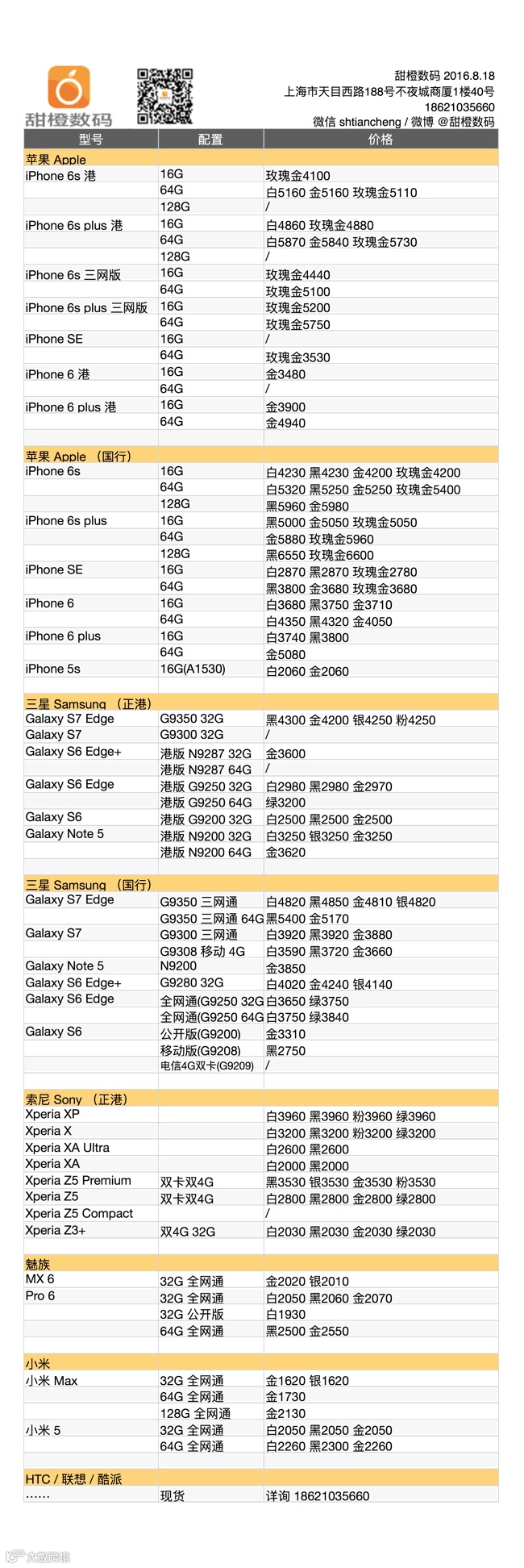 经过昨天的大降价后,今天市场各款手机的价格均归于平静;目前 iPhone 6s 及 plus 港版、国行版为首的 iPhone 全系机型,以及三星 Galaxy 国行各款机型均处于低位,适合入手。
