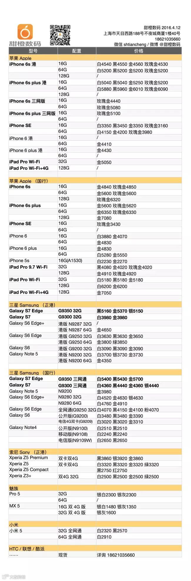 iPhone 6s 小幅放价,6s plus 仍然价格坚挺;iPhone SE 需求旺盛,但今天港版机型价格大幅度松动;三星 Galaxy S7 出现反弹,S6 系列顺势走低。