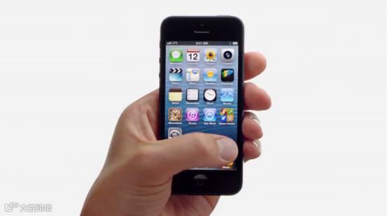 正是由于iPhone的赖以生存的优势建立在拇指操控上,所以苹果一直不愿推出大屏幕手机,在三星大屏手机的夺命连环击的攻势下,才扭扭捏捏,非常不情愿的推出了4英寸的iPhone 5,事实上iPhone 5也是为了照顾拇指的原因,只是增加了iPhone的高度,并没有增加iPhone手机的宽度。在2012年的《拇指》(Thumb)广告中,苹果就非常自豪的展示了4英寸的iPhone能够被拇指完全把玩的效果。