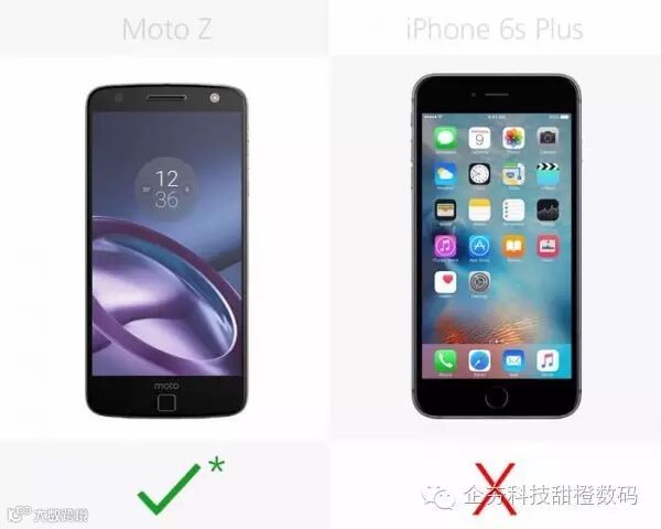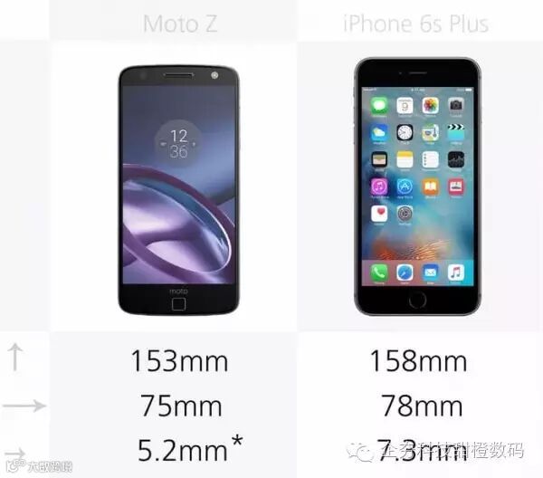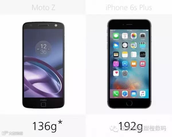 Moto Z在重量上要比iPhone 6s Plus轻29%,同样这里是指Moto Z没有任何附加的情况下。