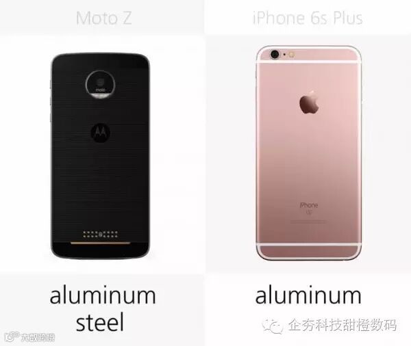 Moto Z的基础部分由铝合金和不锈钢制成,而自2012年以来iPhone产品线一直使用铝合金一体成型机身。