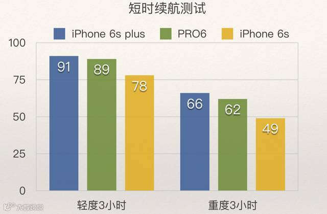 PRO6 采用了 2560 毫安的电池,对于 5.2 寸的 AMOLED 屏幕而言,这个电池容量说大不大,说小不小,手机的实际耗电情况非常复杂,按照惯例,我依然进行了三项基础测试,而对比的机型依然是比较有代表性的 iPhone 6s plus 和 iPhone 6s。