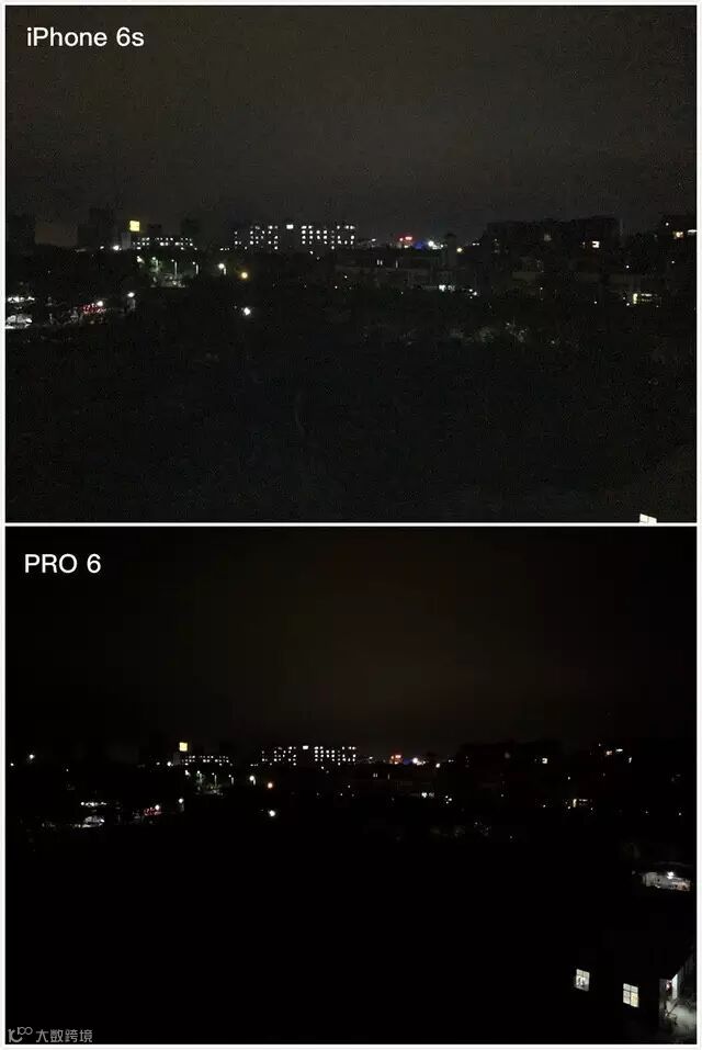 在夜间成像上,从第四张光线极差的夜景来看,iPhone6s 出现了比较严重的噪点,而 PRO6 则通过延长曝光时间并进行色彩涂抹来控制了噪点,但是画面的涂抹感又比 iPhone 要更加严重。
