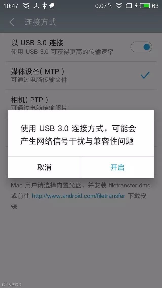USB3.1:PRO6 上搭载 USB3.1 是超出我意料之外的,原因就在于曾今有一款机型在 USB3.0 上吃过亏,它就是三星 NOTE3,三星 NOTE3 是全球首款搭载 USB3.0 技术的手机,而其在传输速度上的性能表现也确实非常抢眼,但是,NOTE3 上的 USB3.0 有一个硬伤,就是在进行 USB3.0 传输时会有信号干扰的情况,同样在 PRO 6 上,当你开启 USB3.0 时,它同样会有信号干扰的提示。