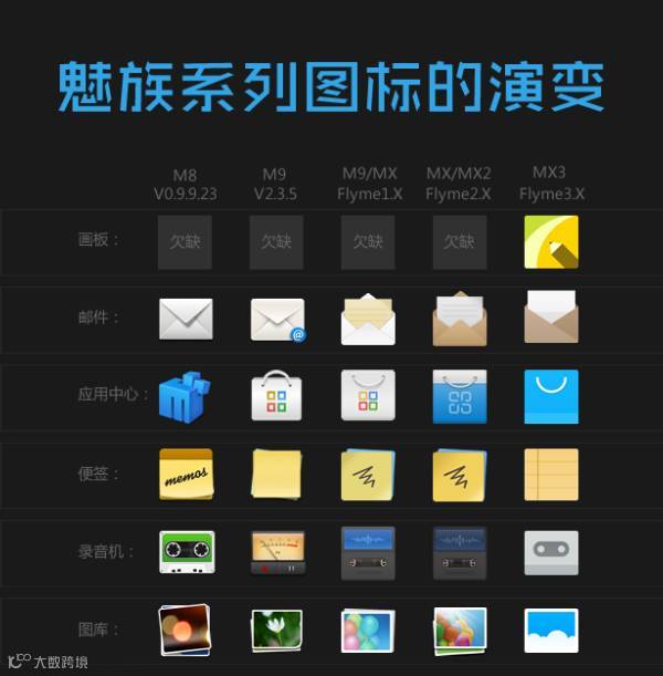 Flyme 和 MIUI,它们都是在国内有着最长时间打磨的标杆设计,以 Flyme 的图标为例,从 M8 到 Flyme 3.0 时代,Flyme 就一直保持着当初所构建的图标基准。
