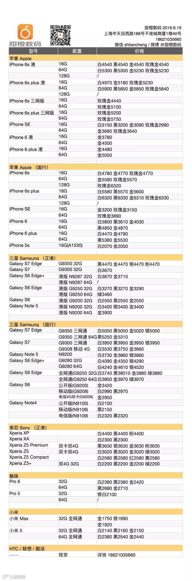 iPhone 6s 港版目前稳定,而 iPhone 6s plus 港版则是小幅走低,国行版目前没有变化;索尼 Xperia XA、XP 两款新机的港版机型目前都是现货开售,详见报价单。