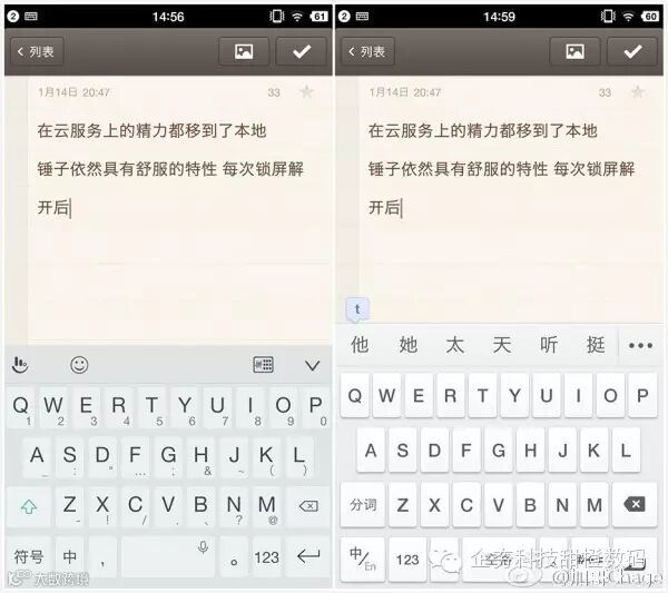 以最常用的输入法为例,目前绝大多数的输入法都开始往扁平化方向进行设计,同样是全键盘风格,锤子自带输入法的视觉表现就比第三方触宝输入法的表现要好的多,而需要双拼大词库等功能的我,又不得不为了更好的第三方功能而在视觉审美上做出妥协。