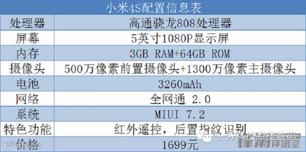 以下是小米4S的配置信息: