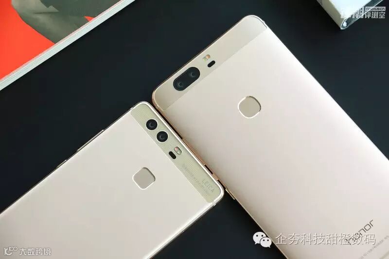 上:华为P9/下:荣耀V8(指纹识别区特写)