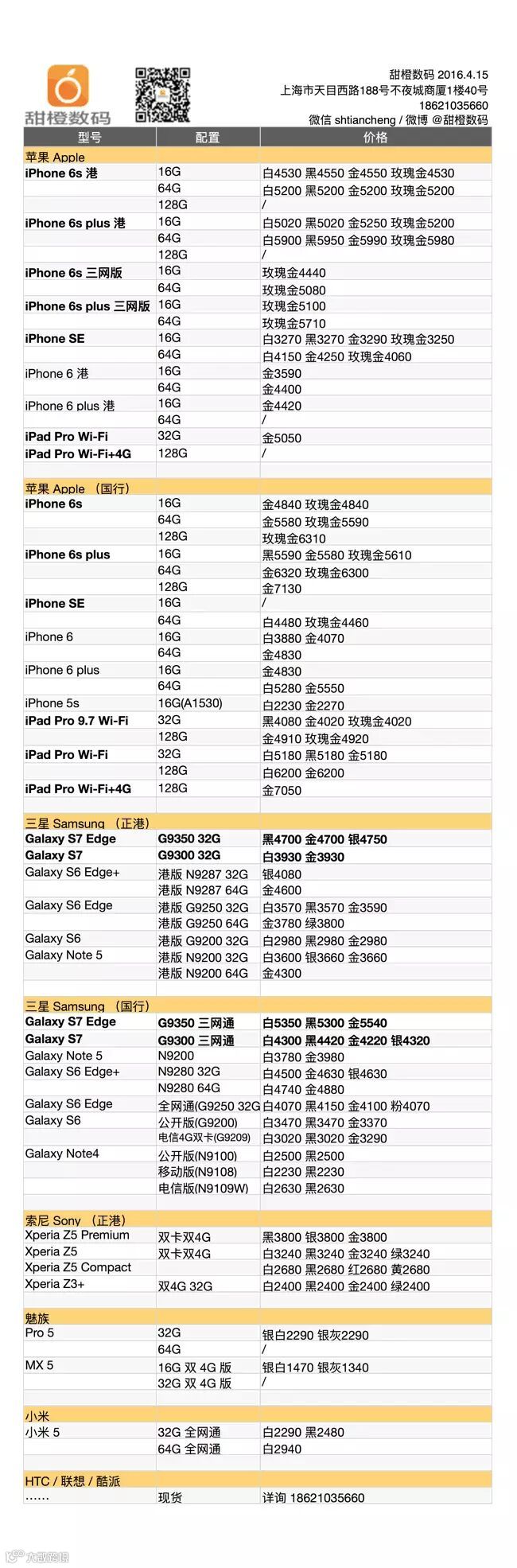 跳水行情轮到国行版三星 Galaxy S7 和 S7 Edge,降幅也在 150 元左右,S6 系列和 Note 5 小幅走低;iPhone 6s 及 plus 港版大部稳定,只有 plus 64G 款价格波动,国行版小幅降价。