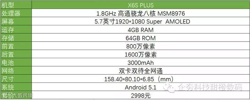 采用了5.7英寸1080P屏幕,另外因为机身尺寸更大,X6S Plus的电池容量增至3000毫安时。