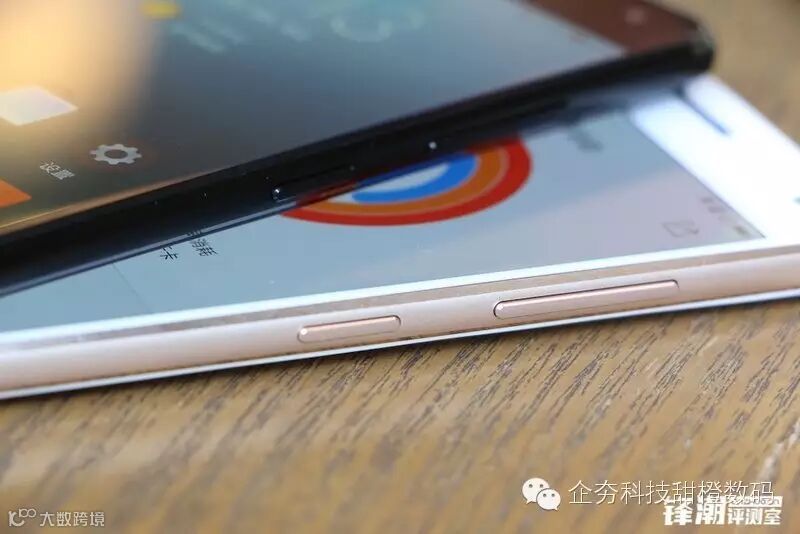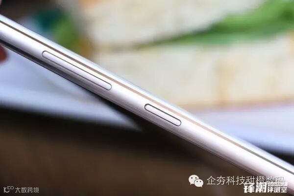 白色版本的金属中框是金色的,而黑色版本的金属中框是灰色的。音量调节键与电源键位于机身的右侧。
