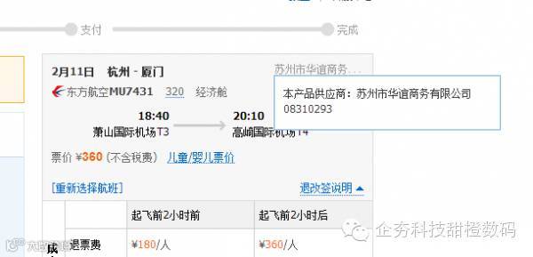 现在,雷锋网记者注意到,在携程购买机票时,全程只有支付页面的右上角显示了供应商的名称和代码,并没有任何资质说明,也没有任何星际评定(去哪儿有)或用户评价(去啊有)。在黑代理遍地的今天,用户如何能够安心购票?