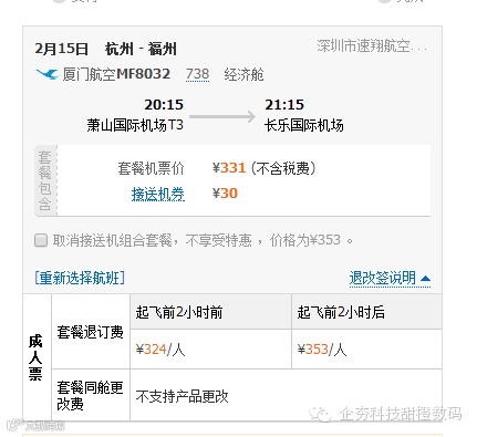 (一张331元的机票退票收取324元,不得改签,捆绑30元接机券)