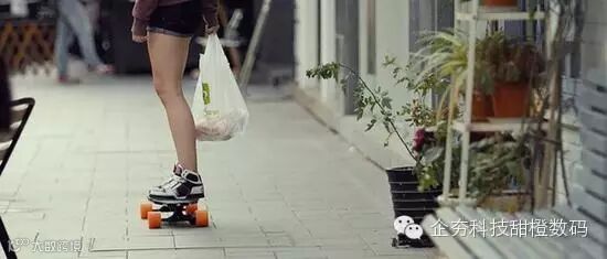 日本公司Cocoa Motors的便携式电动车WalkCar,车身采用铝合金,大小和笔记本电脑差不多。当你不使用该产品时,你可以轻轻松松地把它塞进包里。遇到平地时,你可快速将它从包里取出,以每小时10千米(考虑到高龄人士的使用安全)的速度向前滑行。