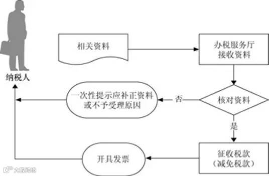(1)办税服务厅接收资料,核对资料是否齐全、是否符合法定形式、填写内容是否完整,符合的即时办结;不符合的当场一次性提示应补正资料或不予受理原因。