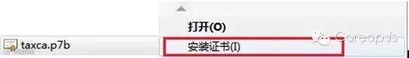 2、鼠标右键01.taxca.p7b文件,选择“安装证书”,如下图所示: