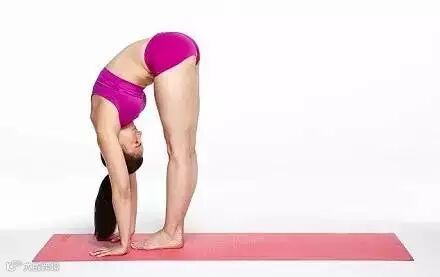 通过燕式跳水动作向前弯曲身体,同时用鼻子呼气,双手尽量触摸脚。如果感觉肌肉拉得过紧,可适度弯曲膝盖以保护背部。
