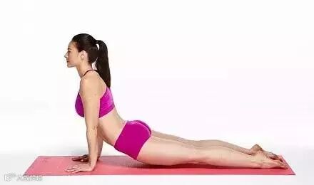 吸气,抬头,同时双臂支撑向下推,尽量让双肩和身体上半部分向上伸展。这就是眼镜蛇式。视线向上,双肩后展,肘部伸直。收紧膝盖骨和大腿以防止抬起。