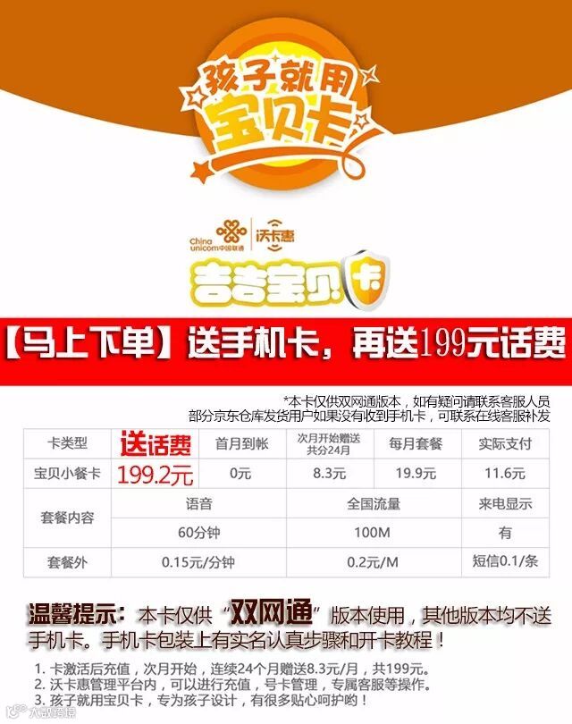 注:北京地区使用不支持本卡,请自行办理移动卡