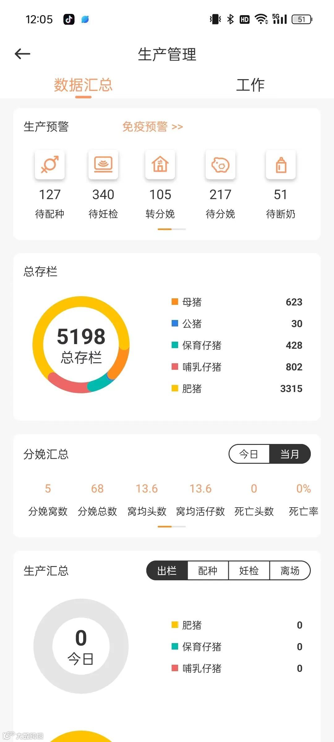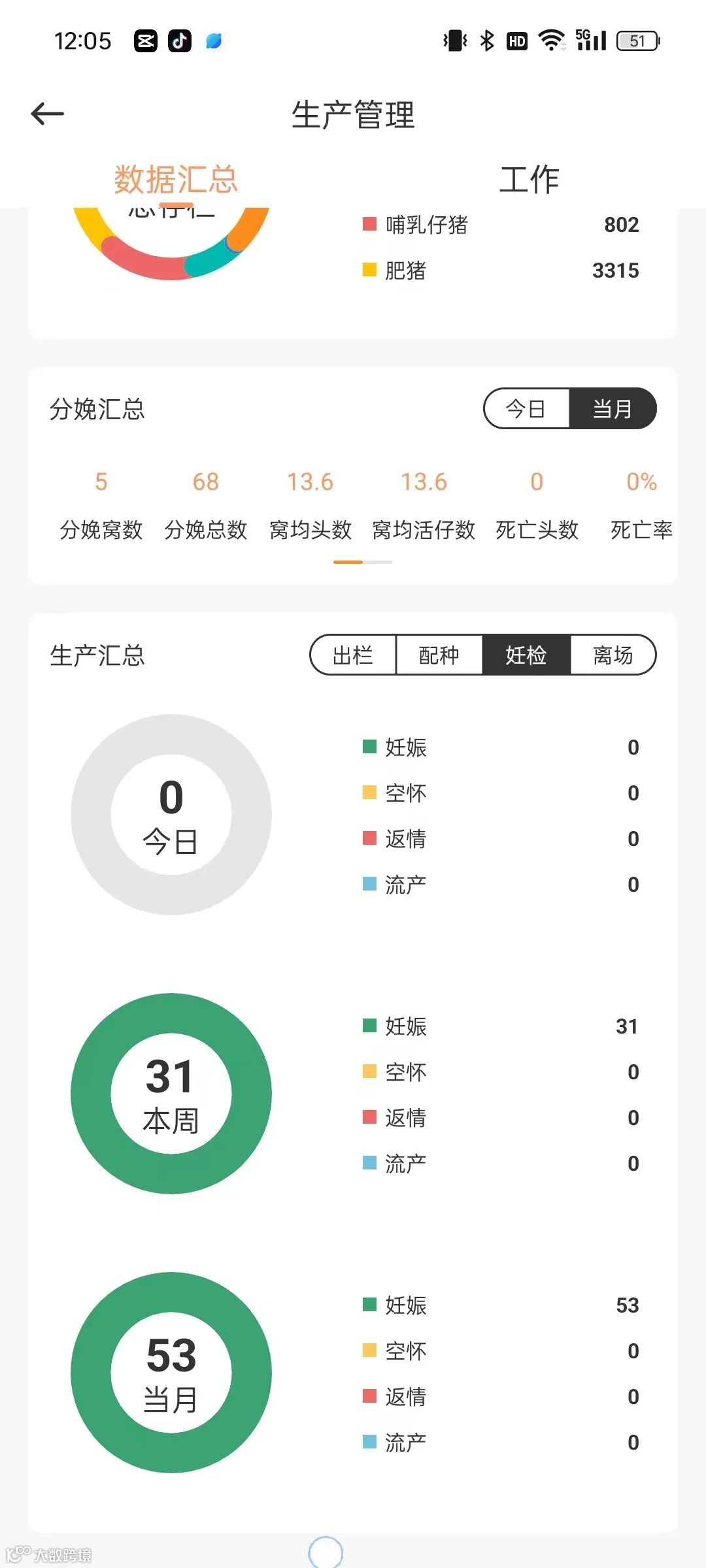 使用云慧养,可以实时查看各项数据汇总,配种、妊检、分娩、断奶等,并且能够智能分析分娩信息,查看当日及当月的分娩窝数、分娩总数、窝均头数、窝均获仔数、死亡头数、死亡率等