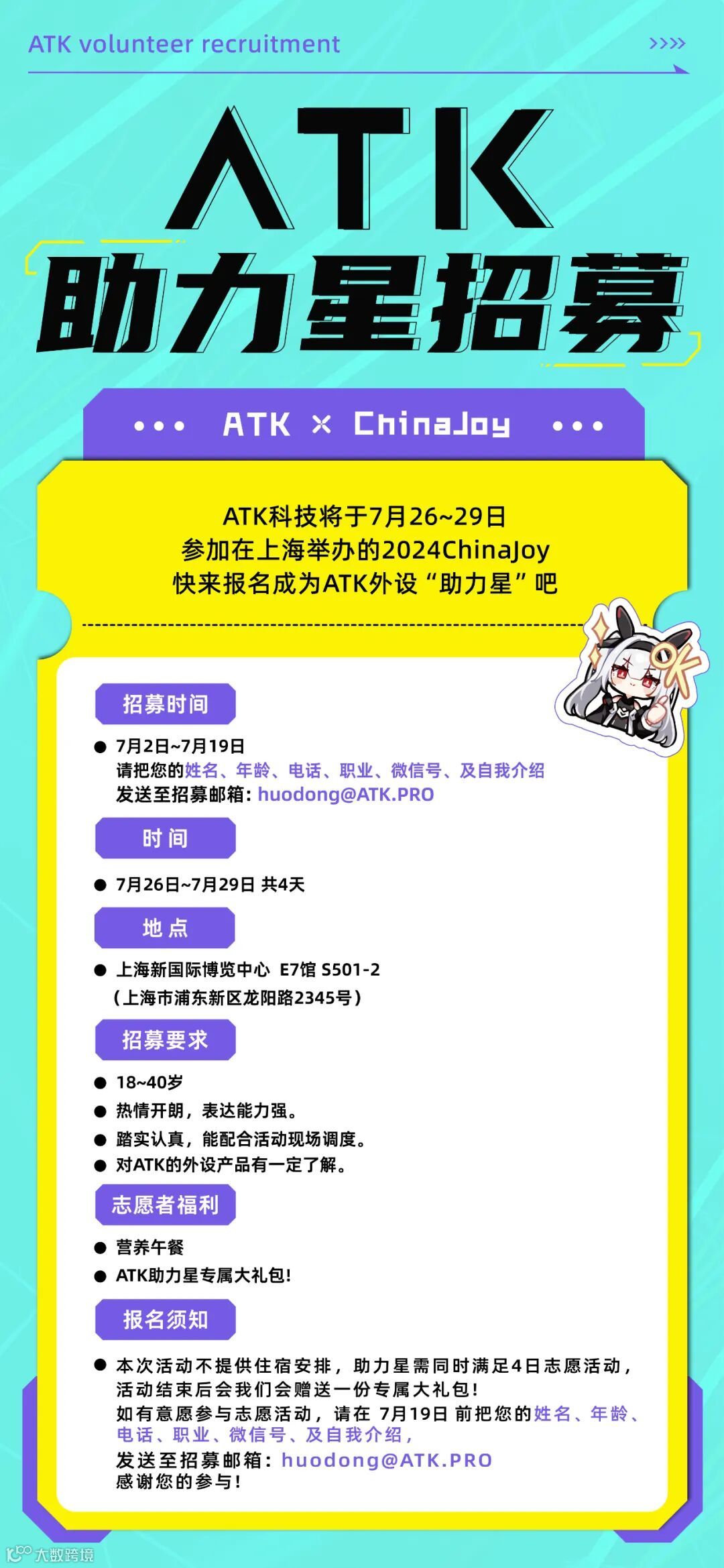 举办的2024ChinaJoy,快来报名成ATK线下“助力星”吧~如有意愿参与志愿