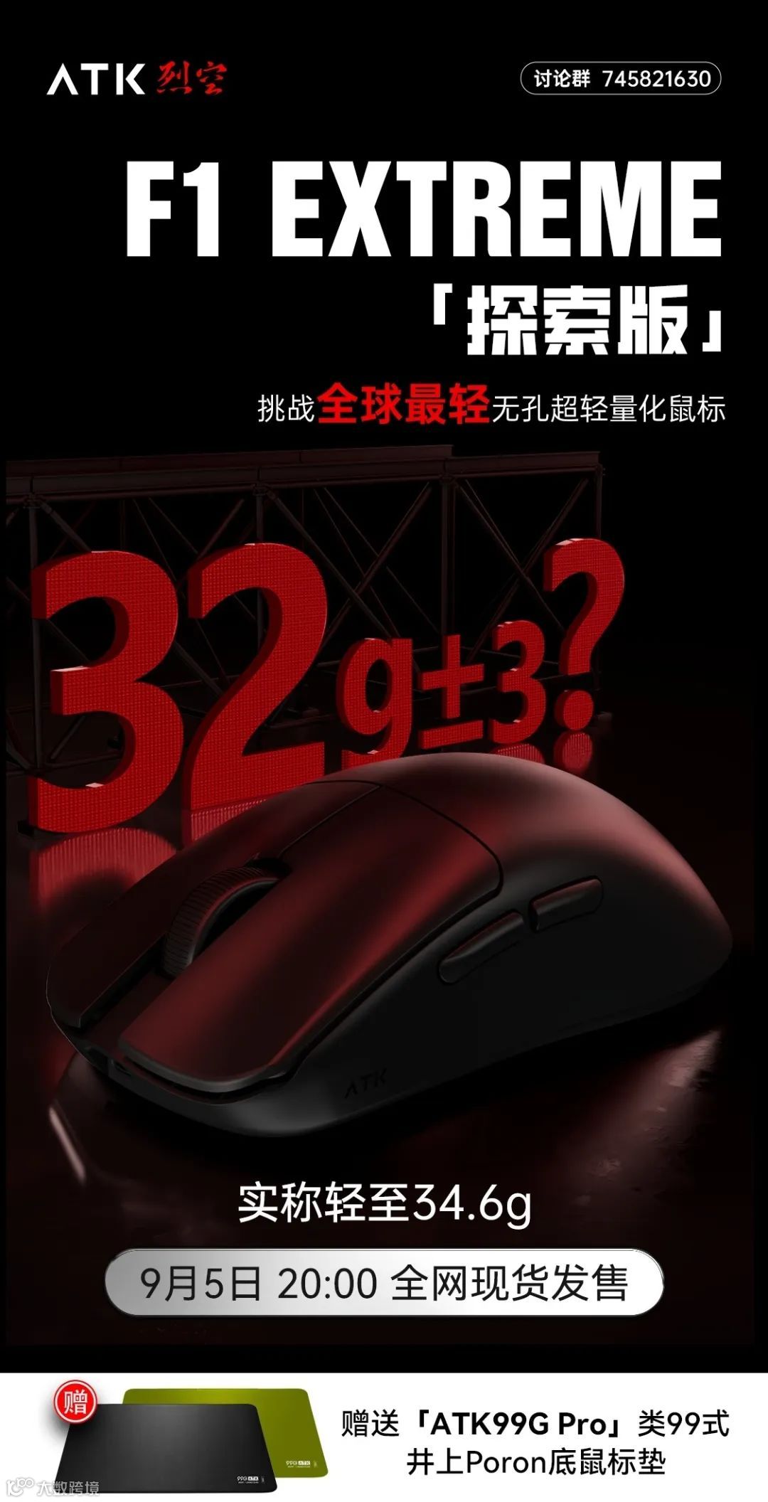 ATK烈空F1 Extreme探索版延续ATK F1超轻量化设计,挑战克重极限,实称最轻低至34.6g。搭载PAW3950ultra高定版旗舰传感器,Nordic 52840旗舰主控,双8K回报率,理论延迟0.125ms,按键延迟低至0.3993ms。全系搭载欧姆龙光微动,冰感涂层,ATK绝鲨® 专业竞技固件,第二代SMARTSPEED Wireless超低延迟技术,支持ATK HUB驱动/网页驱动,可一站式管理多款设备。一起预约起来吧~