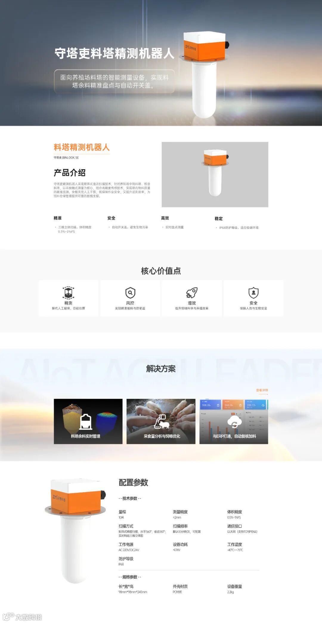 精准测量机器人产品,覆盖养殖场料塔、饲料厂筒仓,过程仓及油/液罐