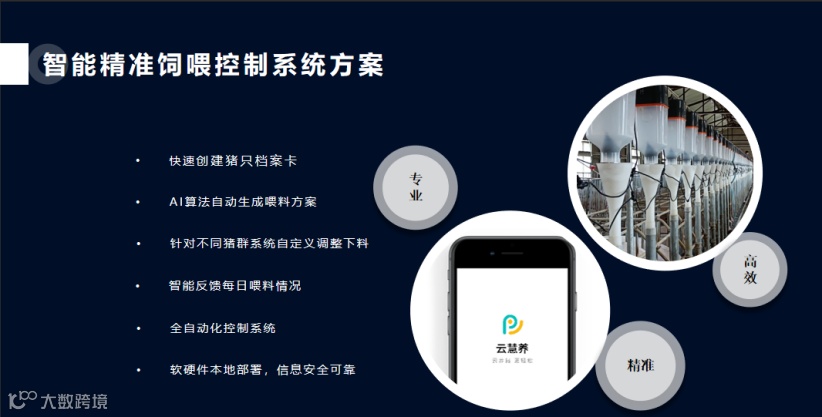 面对这一难题,精准饲喂器出现了。基于清华营养学博士提供的最佳饲喂算法模型,我们结合猪只的背膘、年龄、胎次、预产期等数据编写了一套算法系统,自动生成个性饲喂方案,每天定时定量自动下料。当猪只数据发生变化后,只需一键录入,系统就能实时自动调整饲喂量,实现每头猪获取最合理的营养,同时最大化避免饲料浪费。饲养员也可以通过APP远程操控下料、查看饲喂数据,实现智能化养猪。